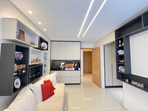 Área Gourmet na sala, com churrasqueira e balcão de apoio;