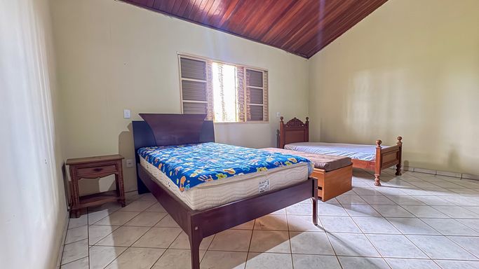 Casa principal (estrutura metálica): 5 quartos (3 suítes)