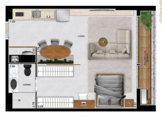 - Apartamento compacto com 54 m²