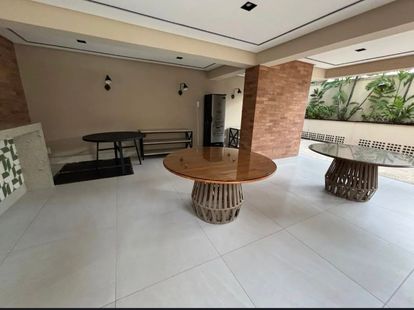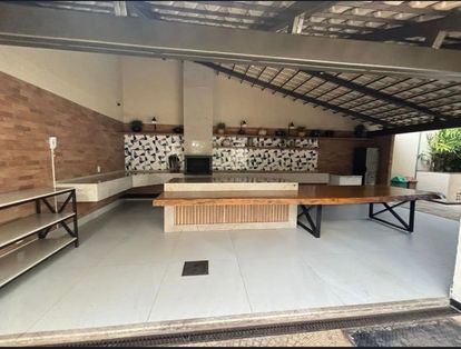 Espaço gourmet com churrasqueira, salão de festas, salão de jogos.